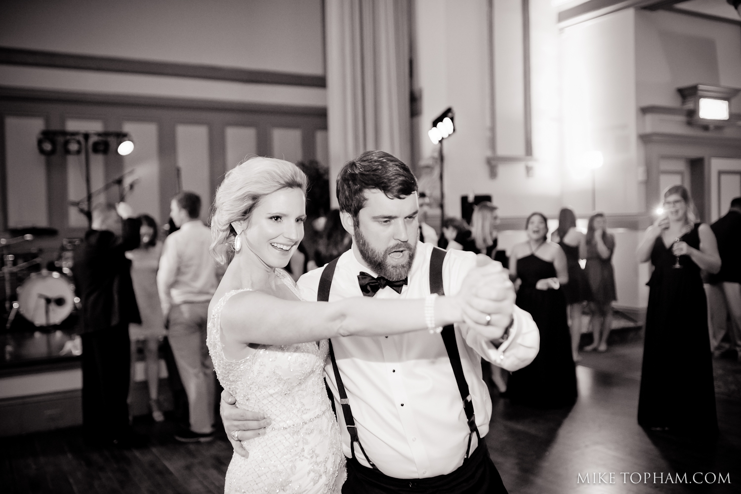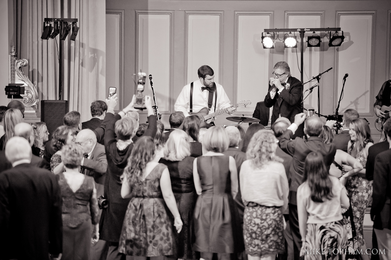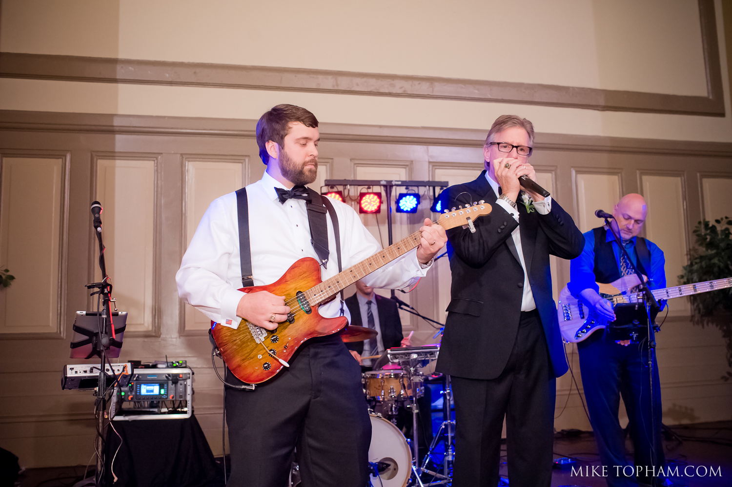 The couple and their guests had such a great time at the reception. The John Marshall is a great venue if you are wanting a band. They have a room for the band members, lighting, and stage. This couple and their guests were big dancers and having great music and lots of dancing was very important to them. The groom and his dad even got on stage and played a song much to the surprise and delight of their guests.