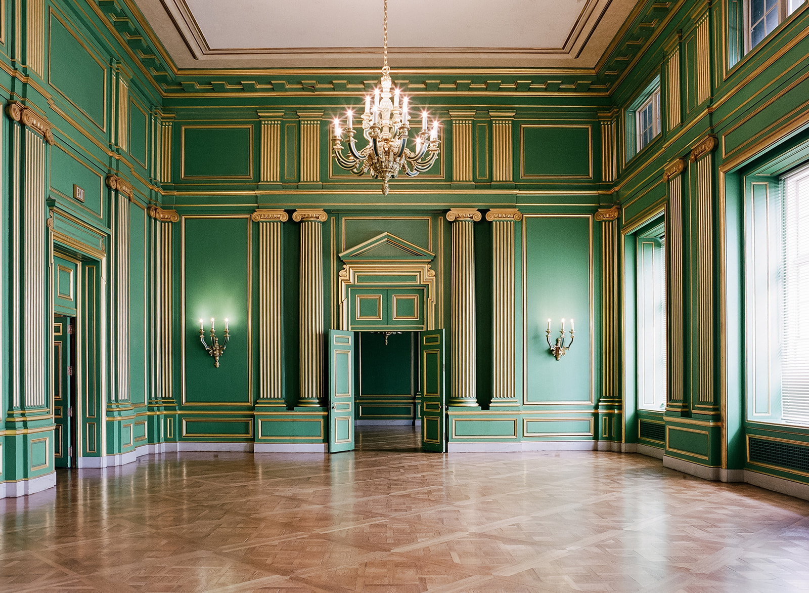 The Green Rooms, located behind the Grand Hall, are perfect for cocktail hours, smaller events, or even as a catering kitchen. These vibrant rooms can also be rented independently, ideal for intimate gatherings or micro weddings.