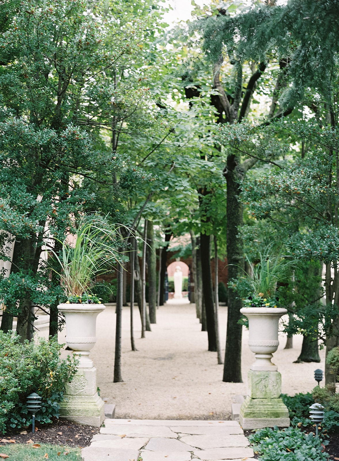 The venue offers several elegant spaces for your reception, including the drawing room, dining room, and library. These rooms are beautifully decorated with marble tables, Chinese temple vases, crystal chandeliers, and pillars that can be adorned with your choice of florals. The venue can accommodate up to 150 guests, though for a more comfortable setting with a larger bar, band, or dance floor, a guest list of 100-130 is ideal. The library can seat approximately 50 guests, while the reception space can host around 100. The gardens also provide a beautiful setting for ceremonies and cocktail hours. If the weather holds, ceremony in the gardens or dining al fresco is a great option.