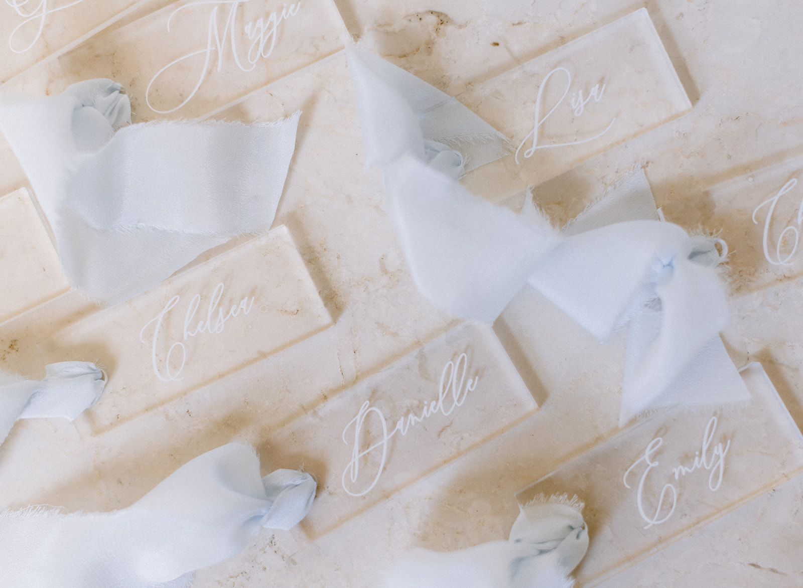 After the ceremony, guests were invited to cocktail hour. Here the guests listened to the sounds of live music, caught up with friends in the lounge, and enjoyed signature drinks from a custom bar with the cutest sign. One of the signature drinks was named after the couples dog, who cameoed in a few places around the wedding. The escort display was one of our favorites to date. i wanted to showcase the venue, bring in a touch of natural elements, and still keep it modern and timeliness. We rented in wooden columns, had acrylic cut in custom lengths and hand lettered, and flanked this by busts found at the venue. The florist softened the look with greenery and candles.