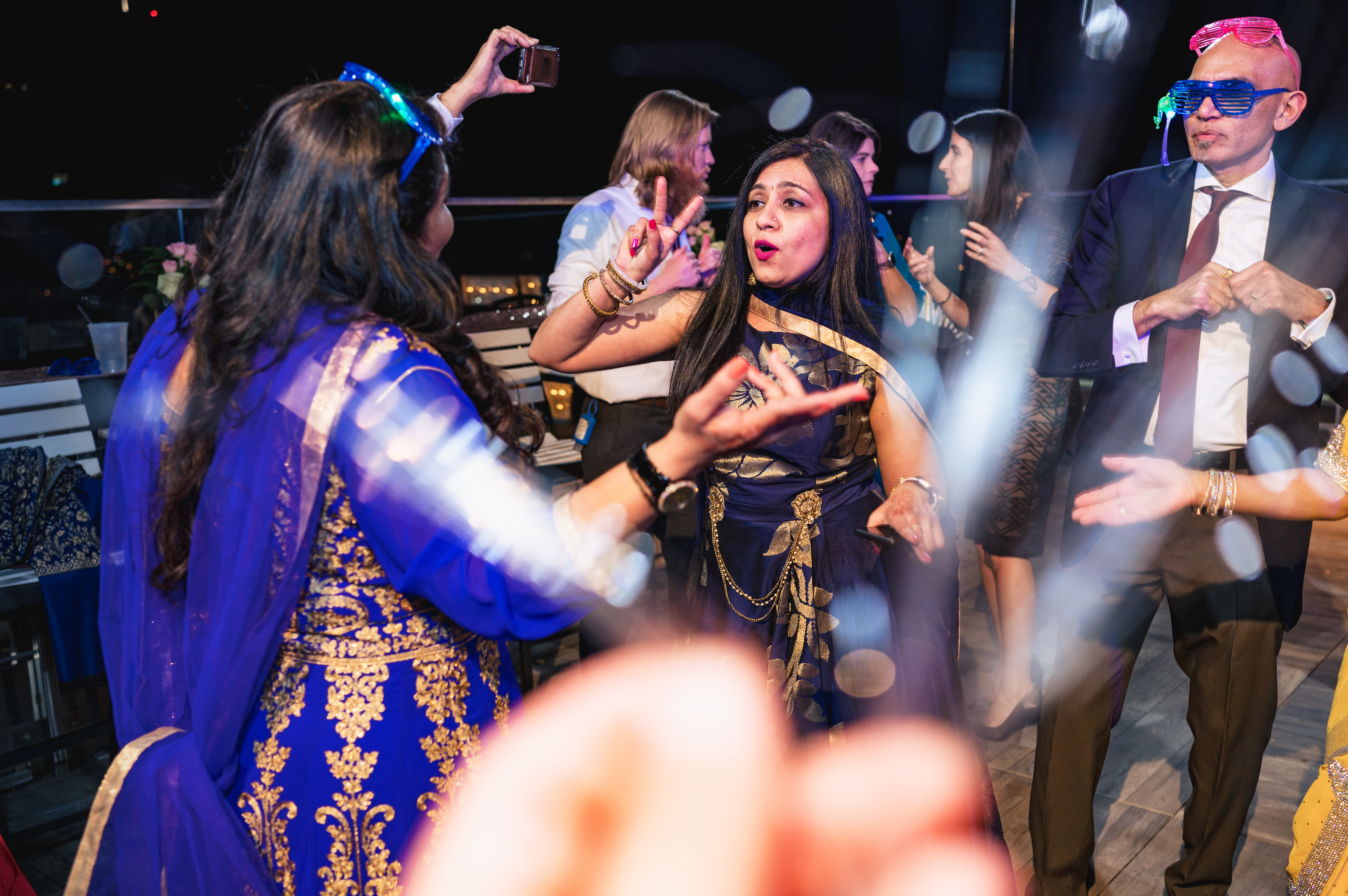 The reception and after party was hosted at Kabanas, a rooftop nightclub in Richmond VA. Dolly, with Gulmohar weddings decorated the space, DJ Geeta played great party and dance music, Lehja catered, and the guests really enjoyed their evening on the roof. The LOVE sign looked great lit up against the Richmond skyline. All of the festivities and celebrations were captured by Studio Nine Photography.