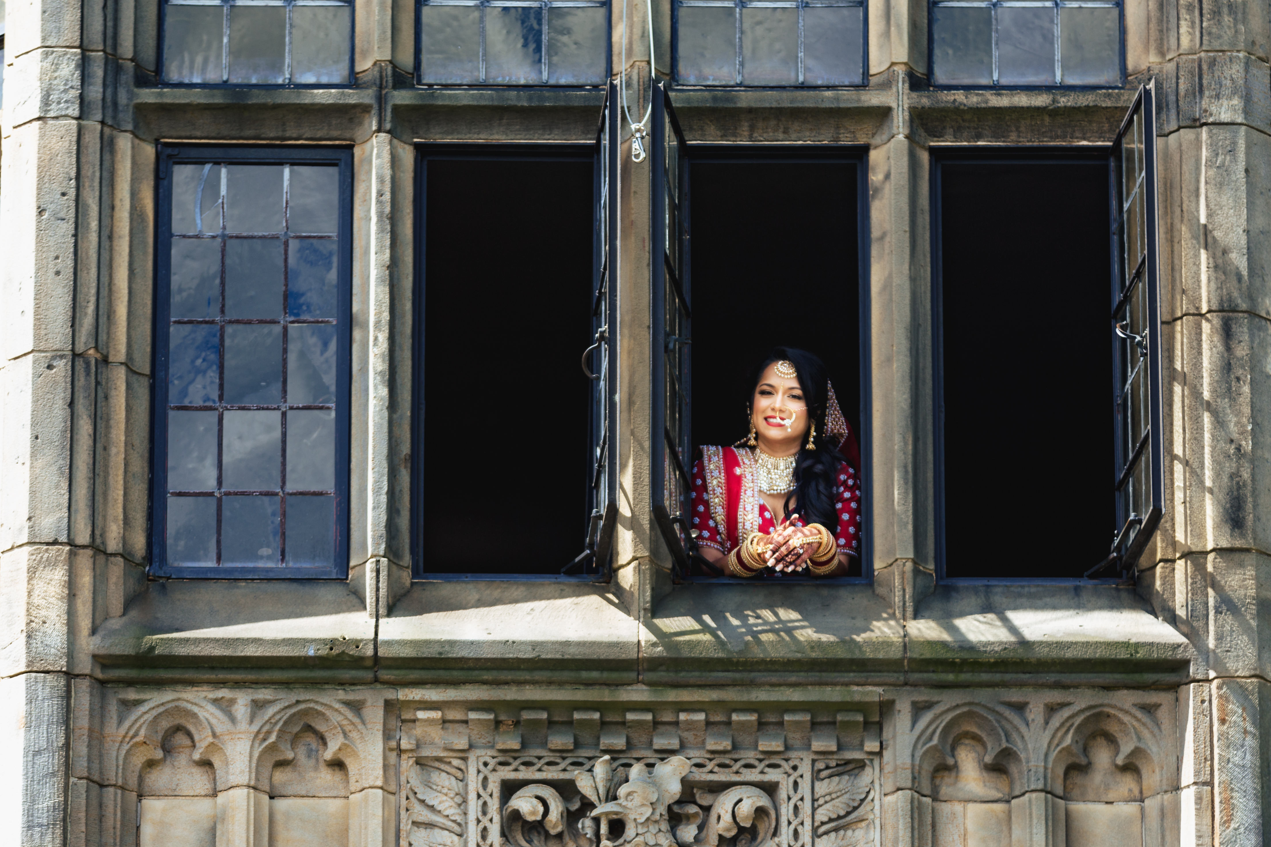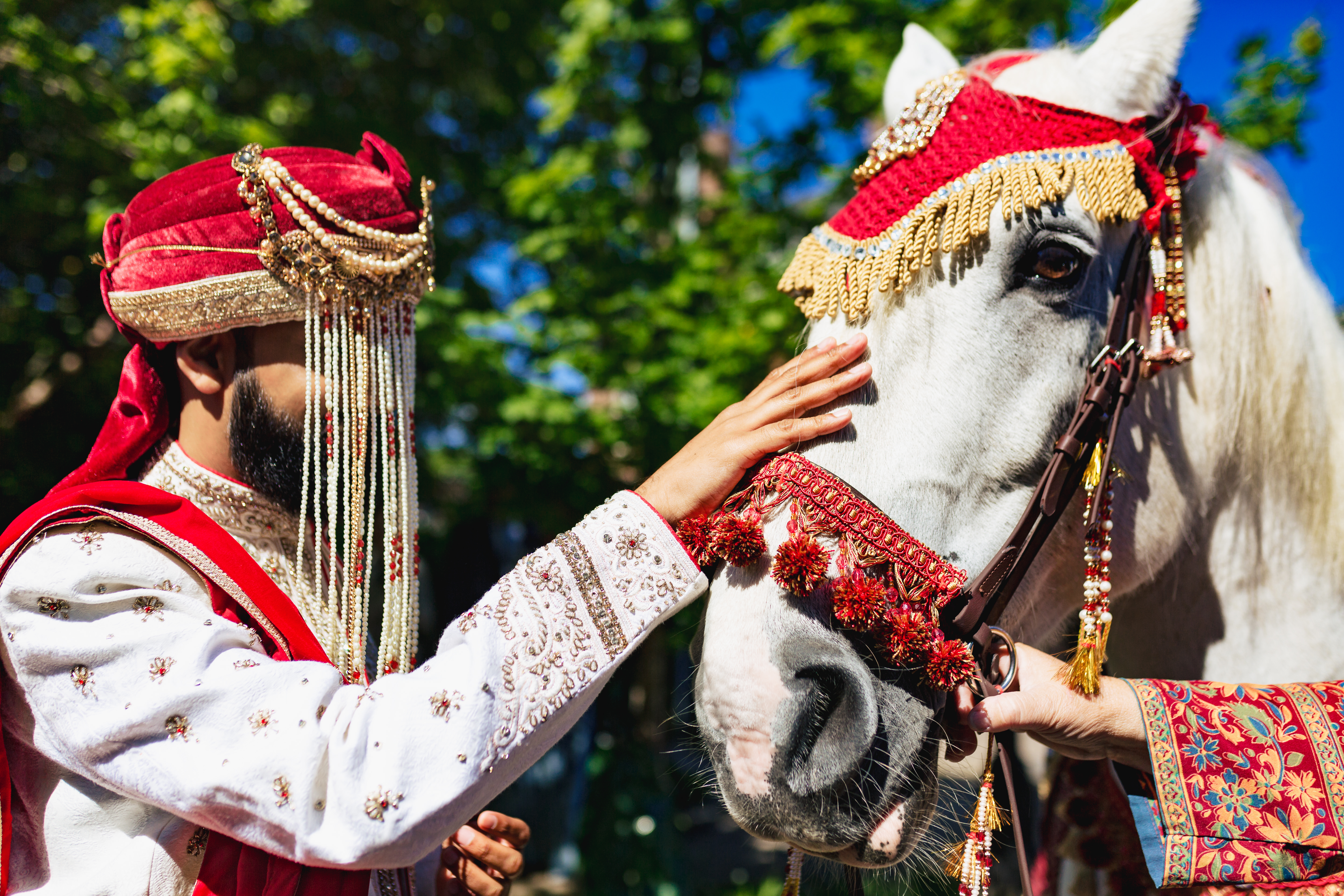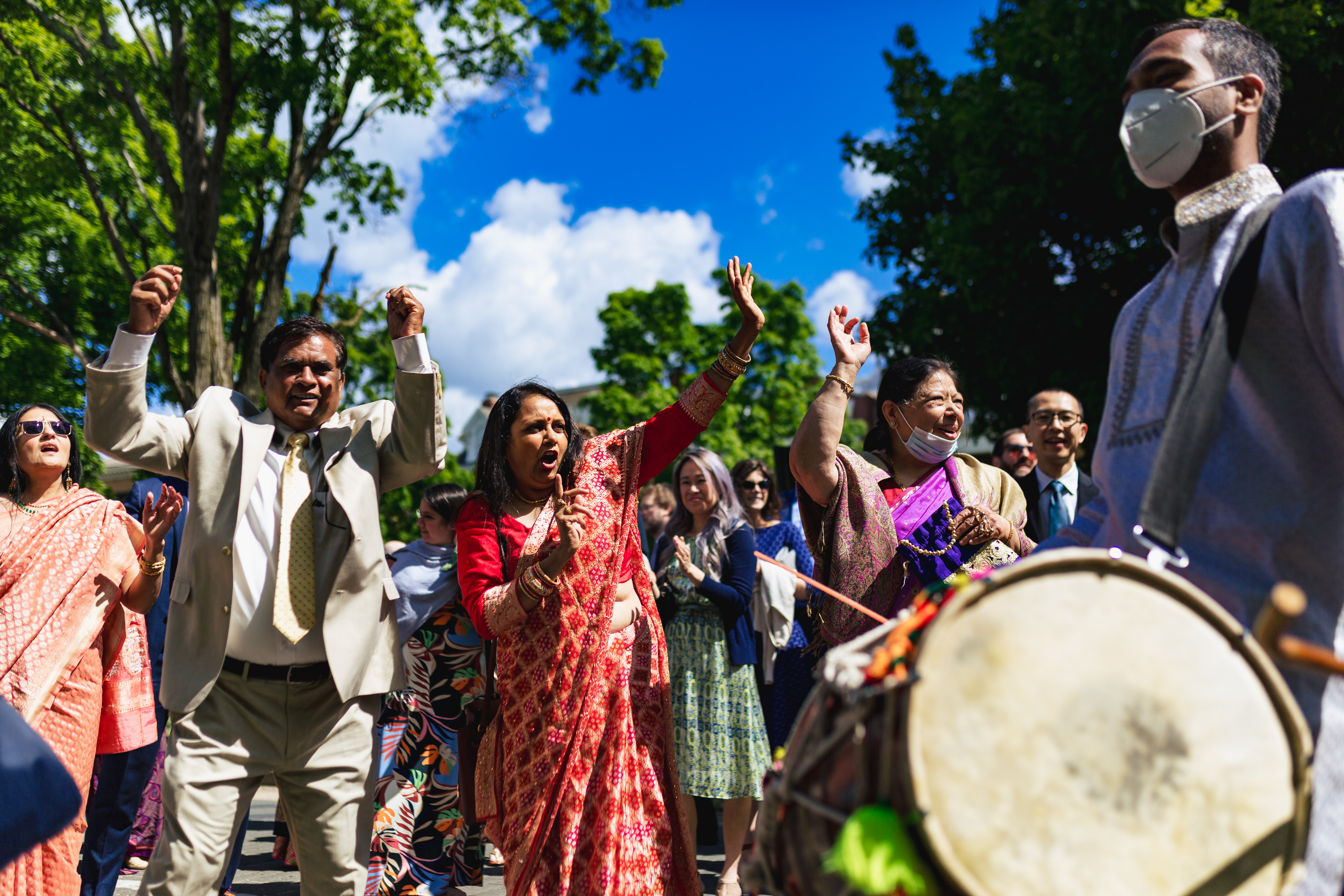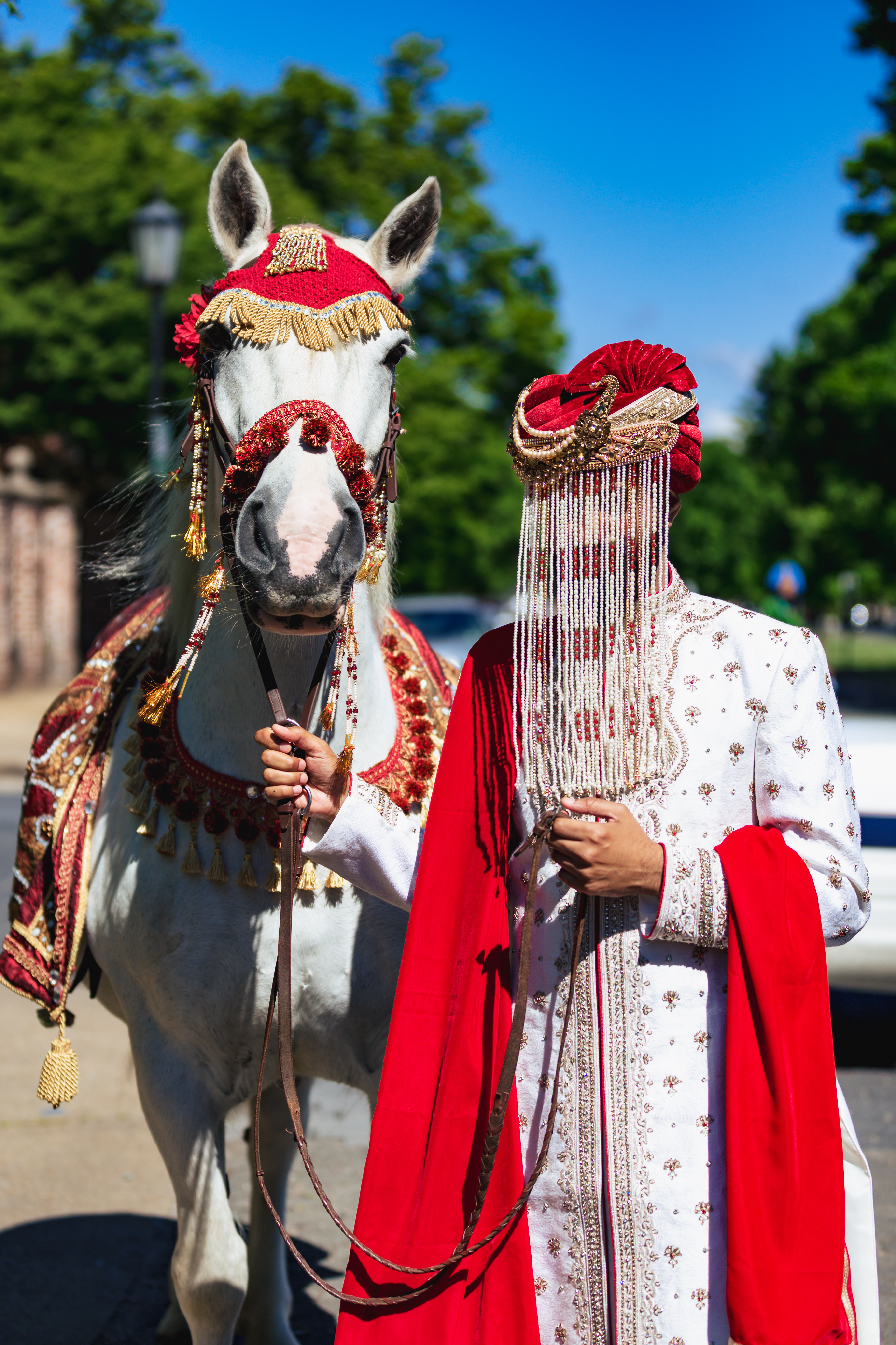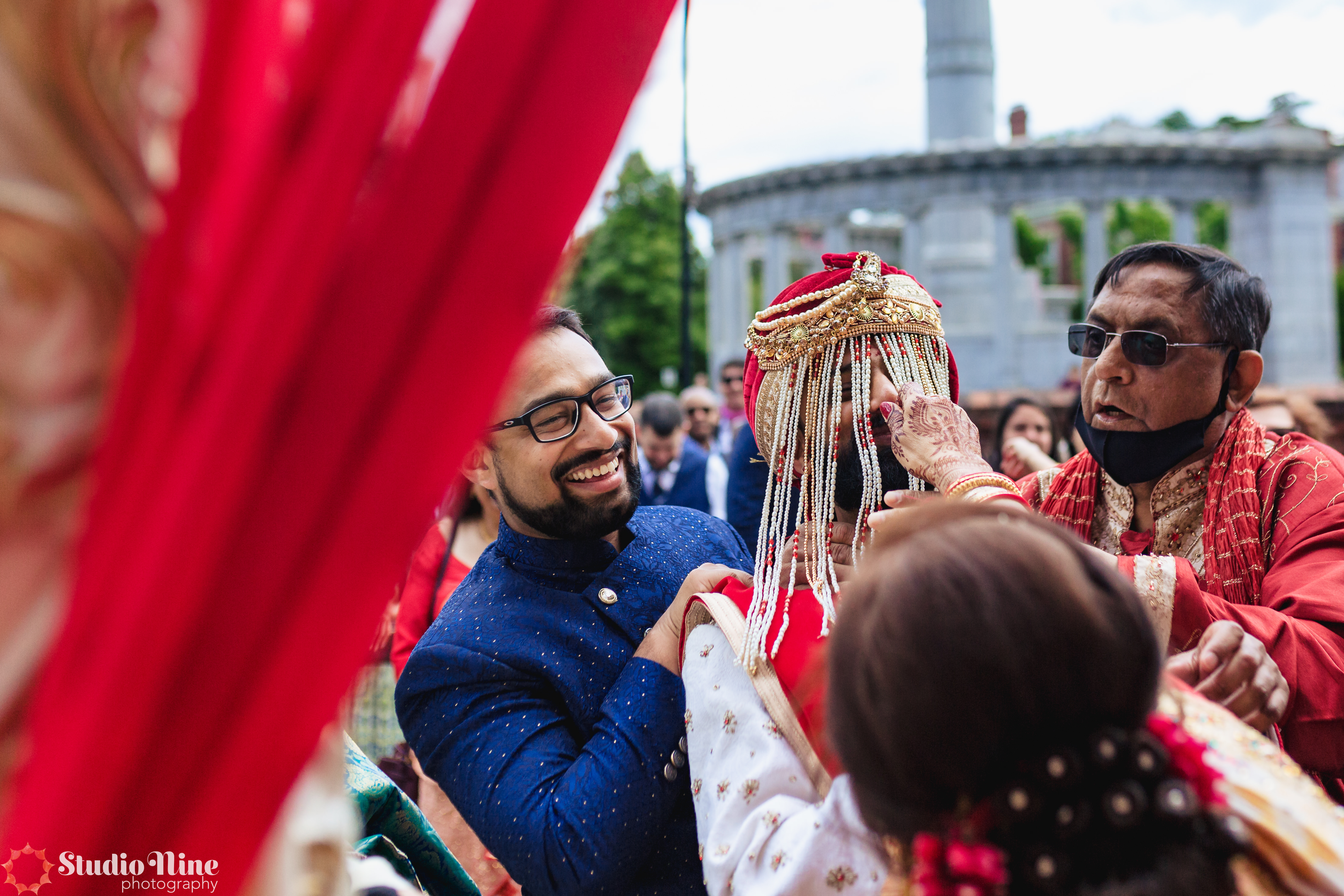 We started the wedding day festivities off with a baraat down Monument Avenue.  Now with any city road closures, or large event, you do need to get permits.  We pulled parade permits and hired two police officers to keep the guests, and the horse safe, while the baraat made it’s way down the road. The DJ played music out of her truck, the Dohl drummer played, and many of the local residents came out to watch and cheer on the groom.  The bride even snuck a few sneak peaks from a window on the second floor of the venue.