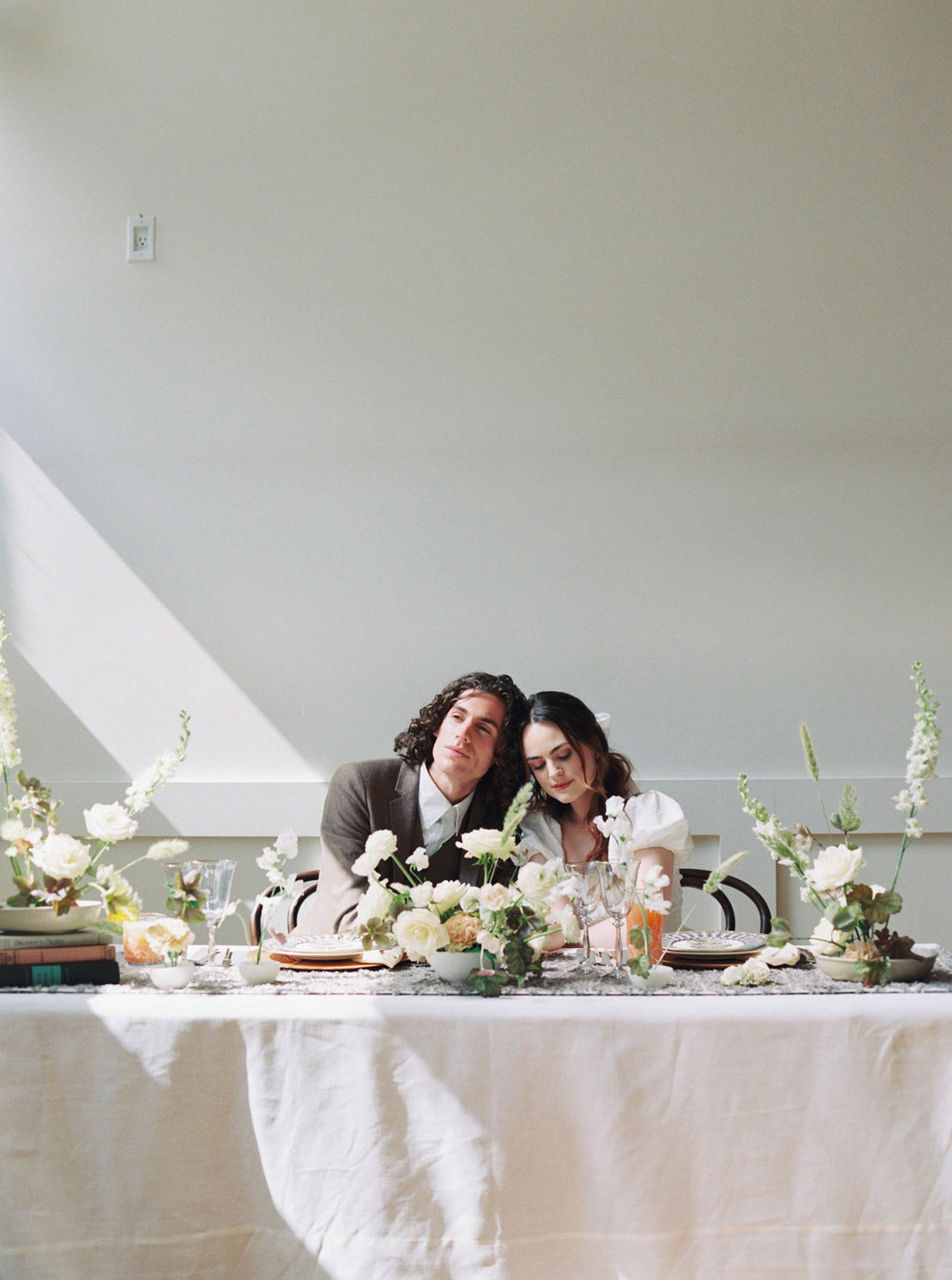 When you have an Elopement, your guests tend to spend more time at the table. They usually enjoy multiple courses, longer conversation, and a few extra glasses of wine or an additional cocktail. Because they spend so much more time at the table, it should be comfortable. It should be interesting. Here we did a bunch of pattern play, and really focused on the textures. I wanted to keep the feeling warm, interesting, and do a play on neutrals. The couple avatar mentioned that they decorated their home in a mid-century style, and I find it important to stay authentic to your personal style, especially at your wedding when there are so many ‘trends’ you can pick up on. Fleure Studio really captured the essence of the shoot by using the ikebana methods. The florals were modern, fresh, and had a sense of balance and lightness throughout the shoots.