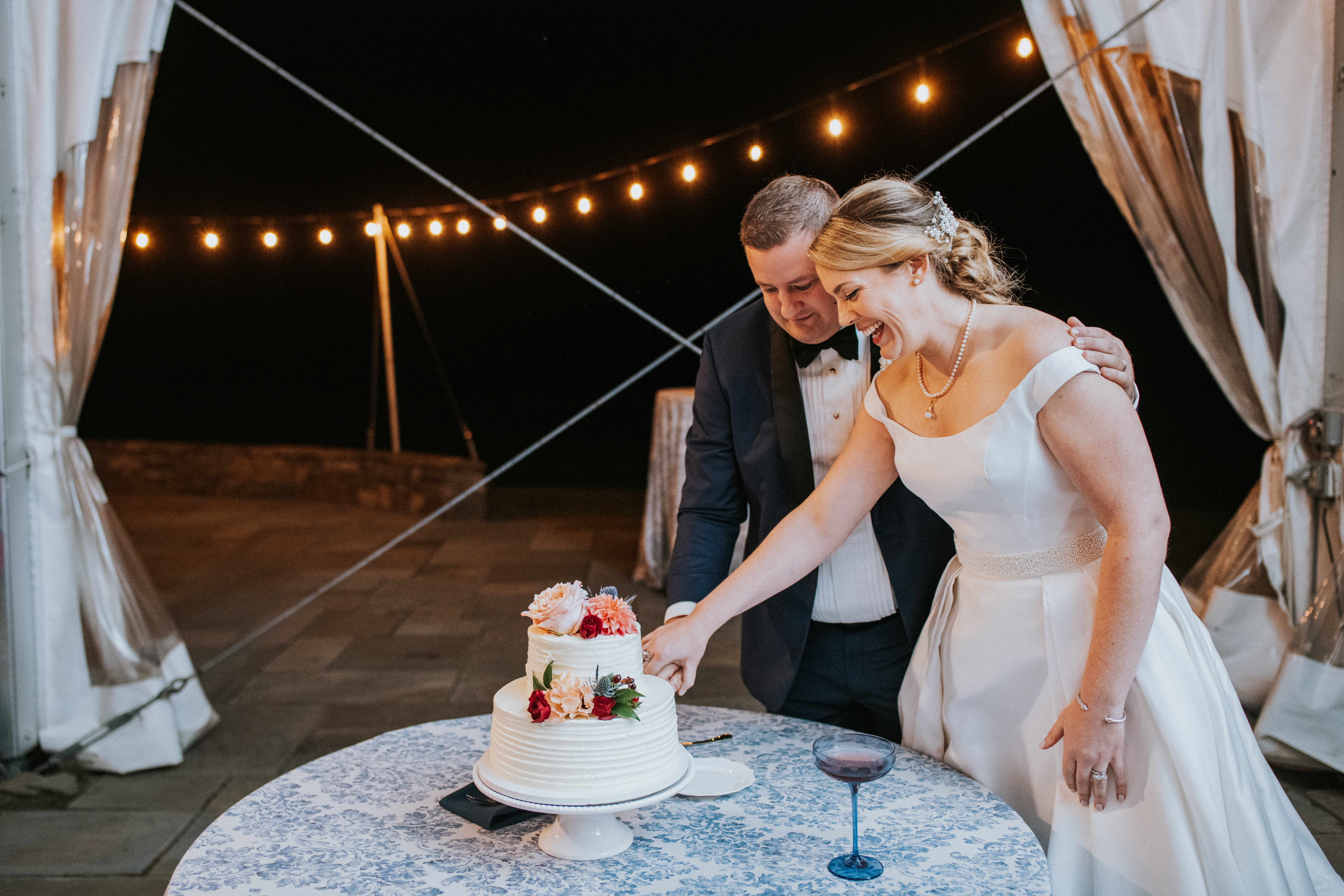 Emily and Nathan still wanted to have the traditional cake cutting, but they wanted more than just cake.  Their favorite dessert is pie, so of course, we had to include a pie bar. There were so many different flavors of pies and also other various desserts. The guests spent the evening dancing to live music, enjoying the mountain views, and spending time with friends and family.