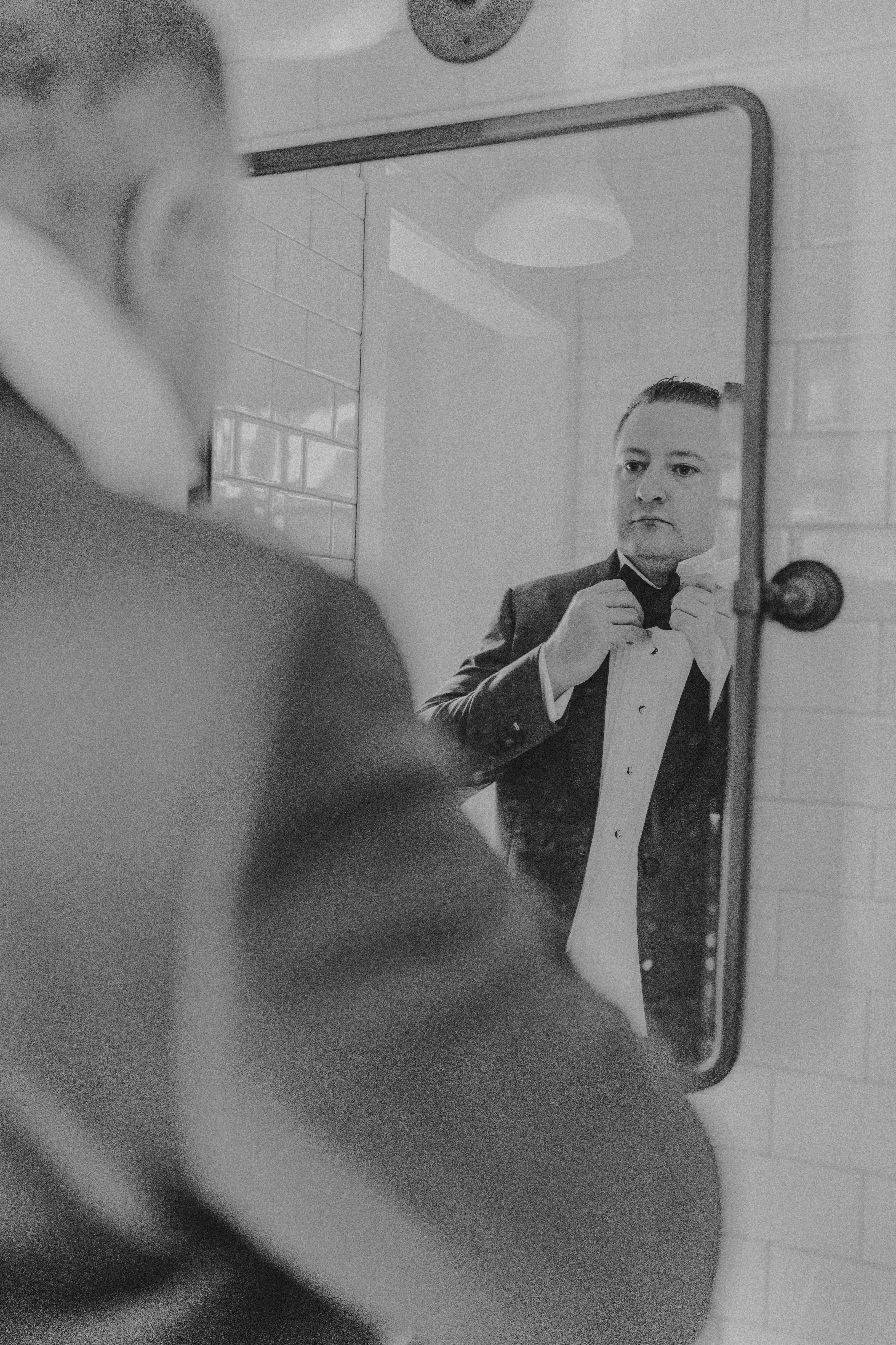 The morning of the wedding started with getting ready at two Airbnbs. Emily and her bridesmaids and Nathan and his groomsmen got ready for their wedding day at their respective houses; there were a lot of laughs while getting ready, mimosas, bourbon (Nathan’s favorite), and reminiscing. The getting ready portion of the day is such a fun time. You, your friends, and your family get to share in the excitement before walking down the aisle. Renting an Airbnb made the getting-ready space so much nicer than trying to cram everyone into a hotel room. They were able to have brunch catered and spread out their personal belongings. We were able to style their gifts, and there was still room for all of the fun and candid portraits.
