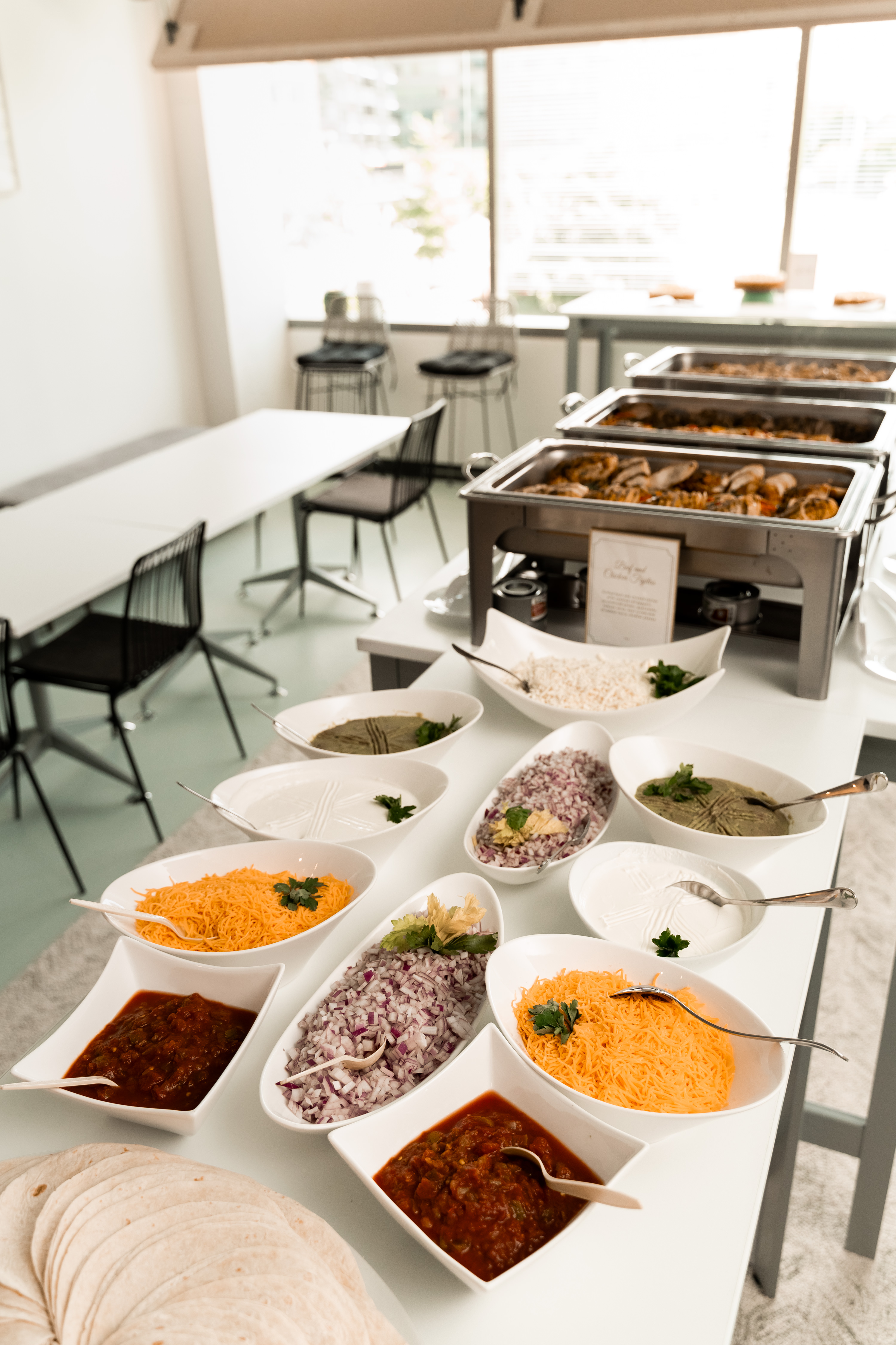 One of the decor highlights of the event was our incorporation of Go Campus’s branding into the décor. We filled the company’s large signature “G” wall with spring inspired floral arrangements, giving the office space a personalized and festive touch. The creative use of branding was a powerful visual element that underscored the company’s identity and created a visually appealing environment.
